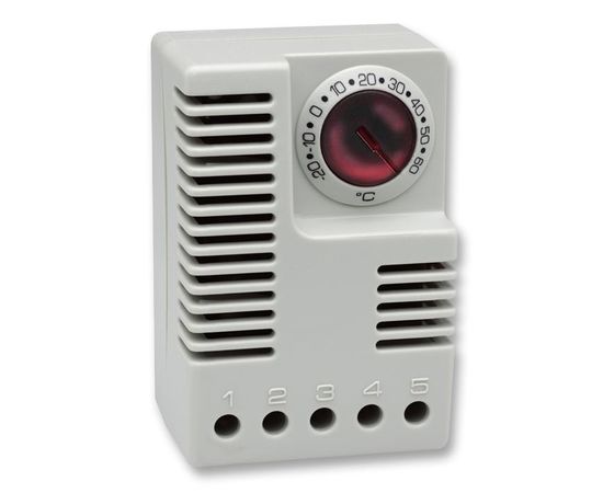 The 01131.0-00 is an Electronic Thermostat with NTC sensor element and SPDT/change-over contact (relay) type. The ETR 011 electronic thermostat is used for controlling heating and cooling equipment, filter fans or signal devices. The thermostat senses the surrounding air temperature and can switch both resistive and inductive loads via an SPDT contact. The integrated LED is lit when the NC is closed (i.e. connected heater is operating).