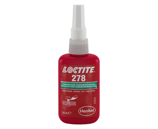 LOCTITE 278 является метакрилатным клеем для резьбы зеленого цвета, который обладает высокой прочностью и средней вязкостью. Время фиксации стали 20 минут, латуни 20 минут и нержавеющей стали 60 минут. Допускается незначительное загрязнение промышленными маслами. Высокий уровень термостойкости.