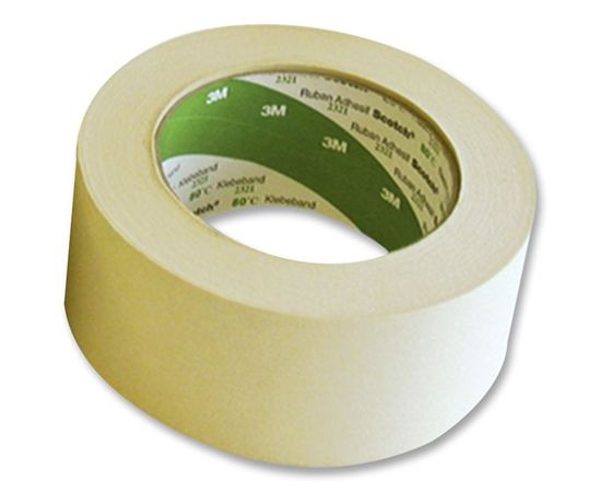 The 2321 38MM is a chamois Scotch® general purpose Masking Tape with crepe paper masking designed for general use applications in industrial masking. It is utility purpose paper tape used for short term paint masking, paper aproning and fixing, bundling, holding, sealing and other applications up to a temperature of 80°C for one hour.