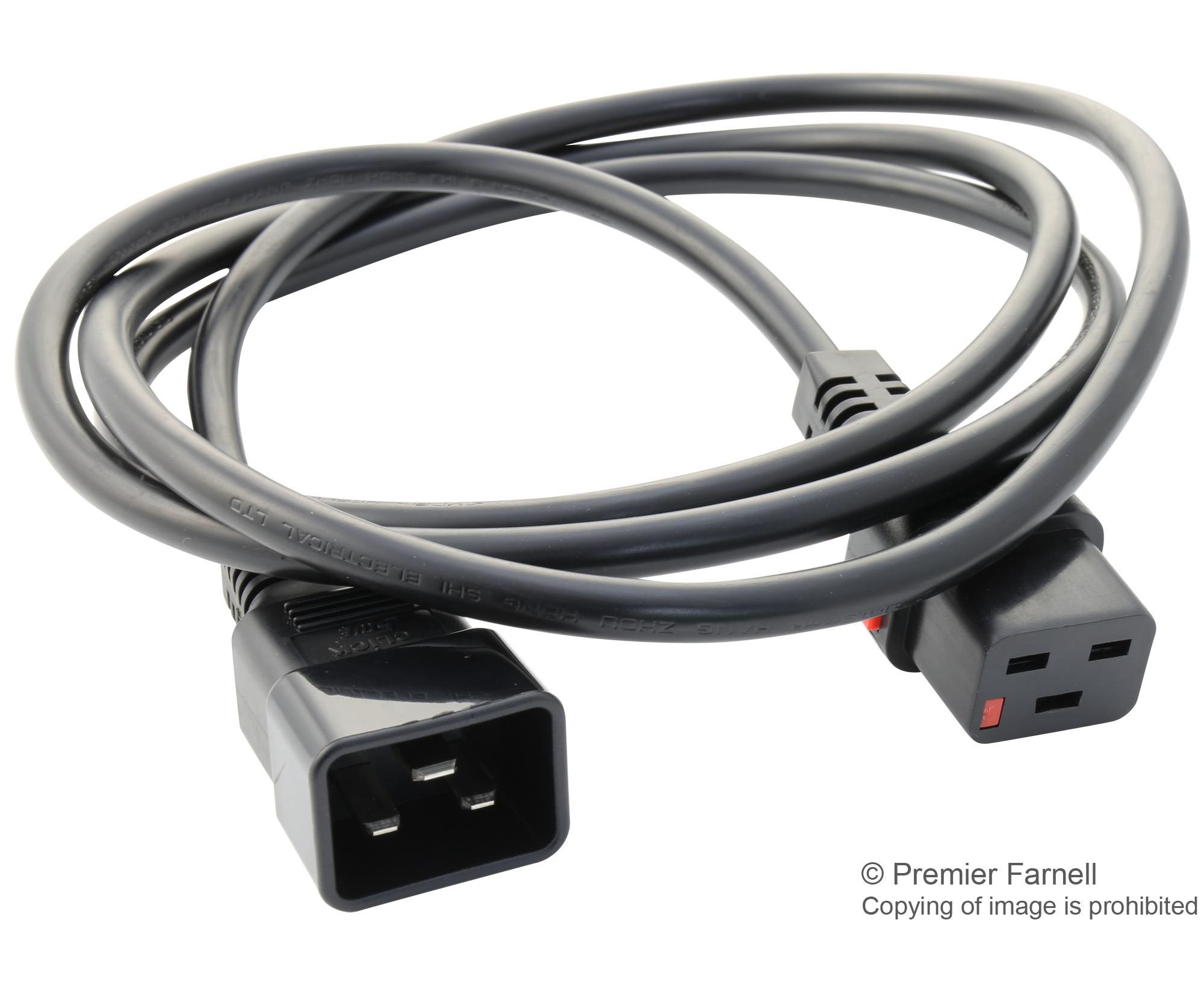 Сетевой шнур, IEC 60320 C19, IEC 60320 C20, 2 м, 16 А, 250 В AC, Черный