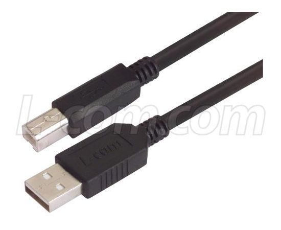 The CAUBLKAB-5M is a 5m black standard USB 2.0 Cable Assembly with type-A male plug at one end and type-B male plug at another end. This highest quality USB cable allows for transfer rates up to 480Mbps. This cable allows for simple plug and play connections. The twisted-pair data lines help reduce crosstalk while 24AWG power conductors enable power transfer from host to peripheral.
