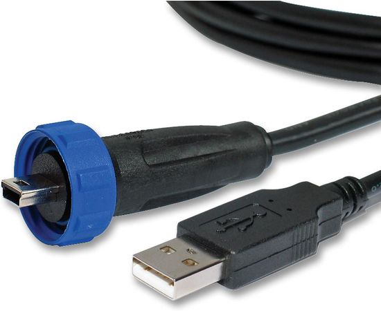 The PX0441/4M50 is a 4.5m single-ended sealed mini USB Cable, sealed mini B to standard A type USB connectors. The mini USB Buccaneer provides a compact solution for USB connections in industrial environments. Utilizing the industry standard mini B connection for the panel connection, the latest in the USB Buccaneer range offers a secure, robust connection performing to USB V2.0, where dust or water could prove detrimental to system operation. The system is fully shielded providing good levels of noise immunity and EMI protection. Cables are fully overmoulded construction offering secure and tamperproof connections.