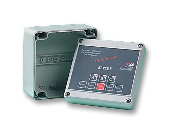 The 63220200 is an Euromas-II Enclosure made of acrylonitrile butadiene styrene (ABS) with light grey finish. It comes with self-tapping coarse-pitch thread lid screws made of V2A, lid and base. The lid has recessed surface for flush fitting of membrane keypads. It has excellent recyclability because of pure-grade plastics without injection-moulded metal parts.