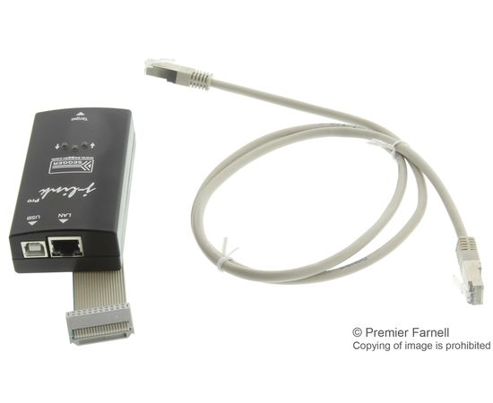 J-Link PRO, плоский кабель, Ethernet кабель (1м), USB кабель.