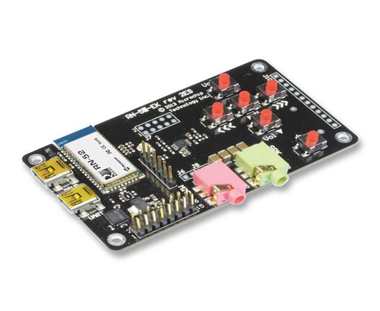 RN-52-EK is an evaluation kit for the RN52, a fully certified Bluetooth version 3.0 audio module, and fully compatible with Bluetooth version 2.1 + EDR. It integrates RF, a baseband controller, and DSP, making it a complete Bluetooth audio wireless link. The RN52 supports HSP/HFP, A2DP, AVRCP, SPP, and iAP profiles and includes support for codecs such as SBC, aptX, and AAC. It provides a UART interface, GPIO, stereo speaker outputs, stereo microphone inputs, and a USB port. Board demonstrates the key features of the RN52 allowing designers to quickly and easily evaluate and develop prototypes.