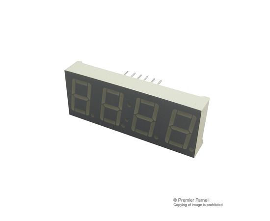 7-сегментный светодиодный дисплей, механически прочный, Зеленый, 20 мА, 2.2 В, 4.5 мкд, 4, 14.22 мм