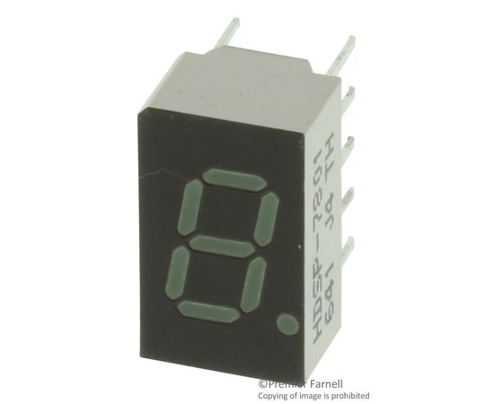 7-сегментный светодиодный дисплей, Красный, 5 мА, 1.7 В, 3.9 мкд, 1, 10 мм