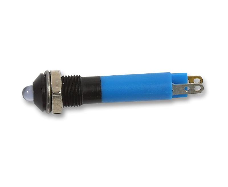 Светодиодный индикатор в панель, обрамление из черного хрома, Синий, 12 В DC, 6 мм, 18 мА, 36 мкд