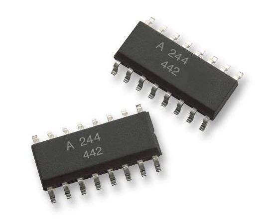 The ACPL-244-560E is a 4-channel 16-pin surface-mount AC input half-pitch Phototransistor Optocoupler contains 2 light emitting diodes connected inversely parallel and optically coupled to 2 separate phototransistors. The input-output isolation voltage is rated at 3000VRMS. Response time (tr) is 2µs typically, while minimum CTR is 20% at input current of ±1mA. It is suitable for sequence controllers and signal transmission between circuits of different potentials and impedances.