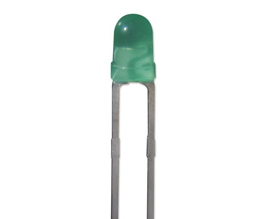 Светодиод, Низкая Мощность, Зеленый, Сквозное Отверстие, T-1 (3мм), 20 мА, 2.2 В, 568 нм
