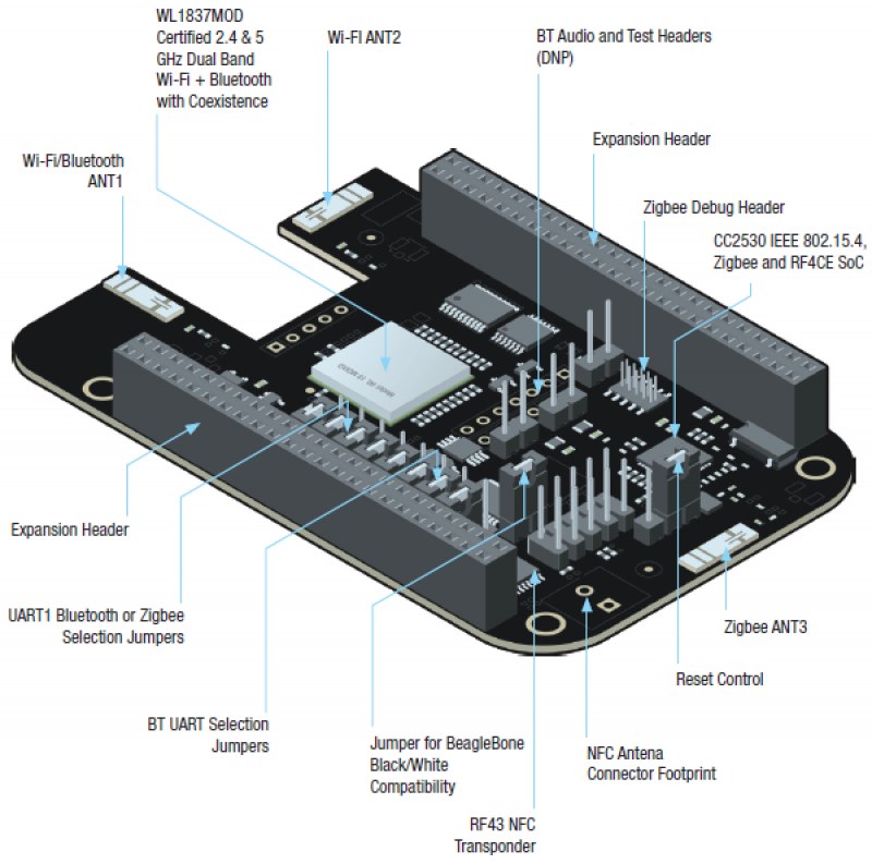 Модуль беспроводного подключения обеспечивает возможности Wi-Fi с увеличенным диапазоном, высокой пропускной способностью, многоканальностью, а так же технологию SmartConfigTM и Bluetooth 4.0 с BLE.