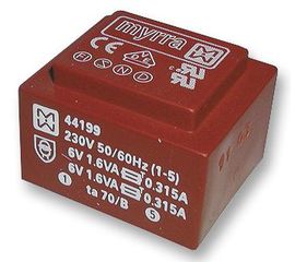 Разделительный трансформатор, EI 66, 30 ВА, 2 x 15В, 1 x 230В, PCB MOUNTED 44xxx Series Документация Technical Data Sheet EN