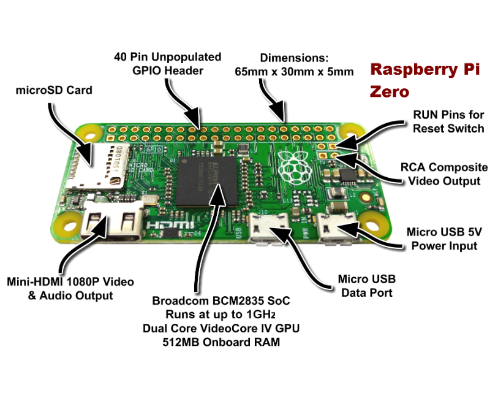 Raspberry Pi Zero cупер новинка от Raspberry Pi Poundation! Самый маленький микрокомпьютер в семействе Raspberry Pi. Размеры платы уменьшены по сравнению с Raspberry Pi A+ в два раза и в три раза по сравнению с Raspberry Pi 2 / B+. На плате установлено 512Мб оперативной памяти как в Raspberry Pi B+.