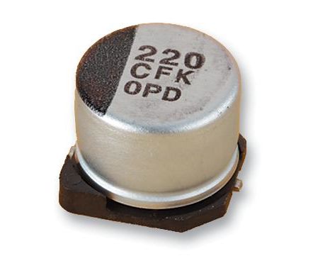 The Panasonic FK series capacitors are automotive grade type V, surface mount polarized aluminium electrolytic capacitors suitable for high temperature lead free reflow. The capacitance value ranges from 4.7µF to 1500µF. These capacitors are perfect solution for applications, which require ultra low ESR, very high ripple current and very long life in small mounting form.
