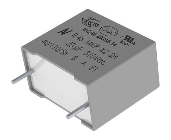 The R41 Series is constructed of metallized polypropylene film encapsulated with self-extinguishing resin box meeting the requirements of UL 94 V-0. Automotive Grade devices are available (up to 22.5 mm Lead Spacing) and meet the demanding Automotive Electronics Council's AEC-Q200 qualification requirements. For use in electromagnetic interference (EMI) suppression filter in "line-to-ground" and "across-the-line" applications requiring Y2/X1 safety classification. Suitable for use in situations where failure of the capacitor could lead to danger of electric shock. Not for use in "series with mains" type applications.