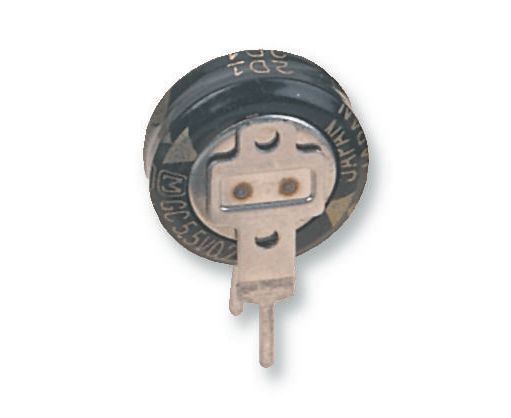 The SG series from Panasonic are stacked coin type electric double layer capacitors. These capacitors are known as "Gold Capacitors" that provides highest volumetric efficiency of all capacitor technologies. They are often compared to secondary batteries. Unlike batteries, Gold capacitors do not rely on a chemical reaction to produce electric current but they are storage cells that utilize the absorption/release reaction of ions. Gold capacitors have no limit to the number of charge and discharge cycles they can sustain and do not need a charging circuit. Repeated rapid charge and discharge cycles are acceptable. These capacitors are mainly used in Memory back-up for video and audio equipment, cameras, telephones, printers, data terminals, rice cookers and intelligent remote controls.