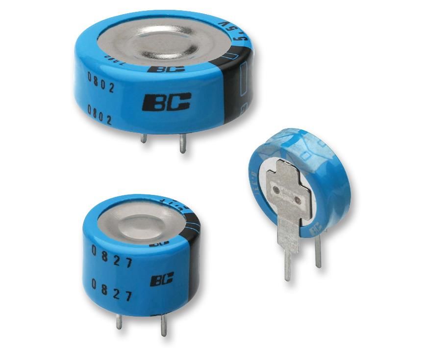 The 196DLC series Double Layer Capacitor suitable for energy storage, for backup of semiconductor memories (CMOS) in all fields of electronics, telecommunication, audio-video, EDP, general industrial, clock and timer system applications.