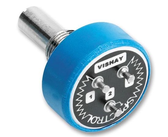 The 357B0502MAB251S22 is a 5kR 1W 1-turn 1-gang bushing panel-mounting Rotary Potentiometer with turret type solder-plated terminals, conductive plastic element and thermoplastic housing. The rotary potentiometer has alumina rear lid and stainless steel shaft.