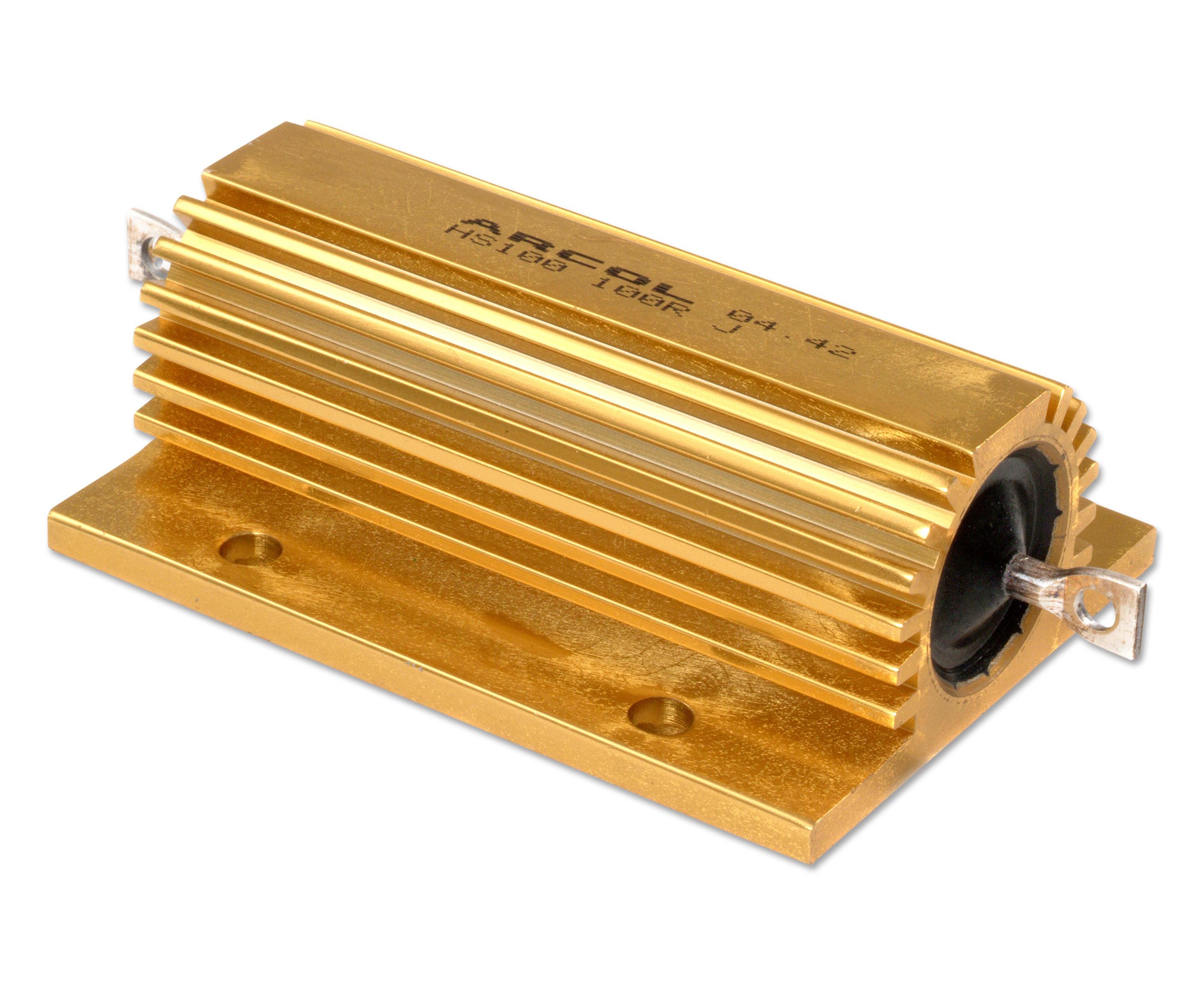The HS100 20R F from Arcol/Ohmite is HS series 100W aluminium housed resistor. Manufactured in line with the requirements of MIL 18546 and IEC 115, designed for direct heatsink mounting with thermal compound to achieve maximum performance. The wire wound design is used to maximise the high pulse characteristics, the power dissipates linearly to zero, even at high ambient temperatures. Its advanced design optimises stability, linearity and reliability making the HS resistors suitable for many applications including braking resistor, inrush limiter, inverter/converter, snubber and balancing resistor.