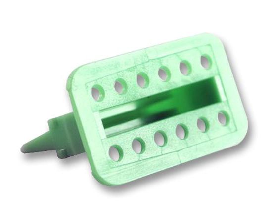 The AW12S is a green Wedgelock made of thermoplastic. It is suitable for use with 12-way AT series connectors.