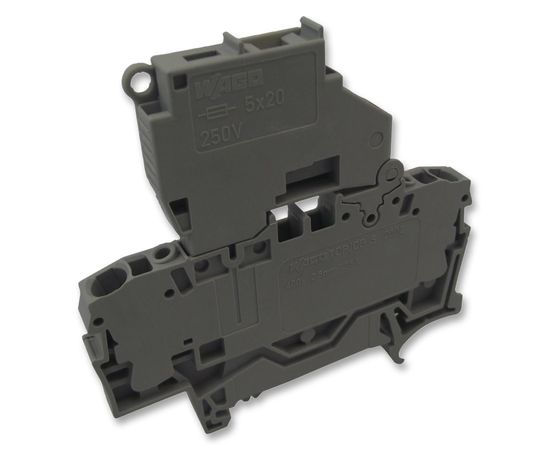 The 2002-1611 from WAGO is a 2-conductor fuse disconnect terminal block with pivoting fuse holder; for 5 x 20 mm miniature metric fuse; without blown fuse indication