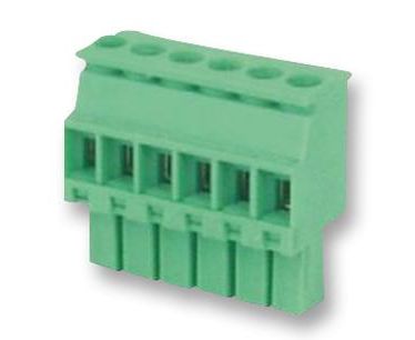 The 20020010-G031B01LF is a 3-pole green Pluggable Terminal Block with back side hook and 5mm pitch size. It has thermoplastic resin housing with zinc-plated steel standard screw, nickel-plated copper alloy clamp and a tin-plated copper alloy terminal.