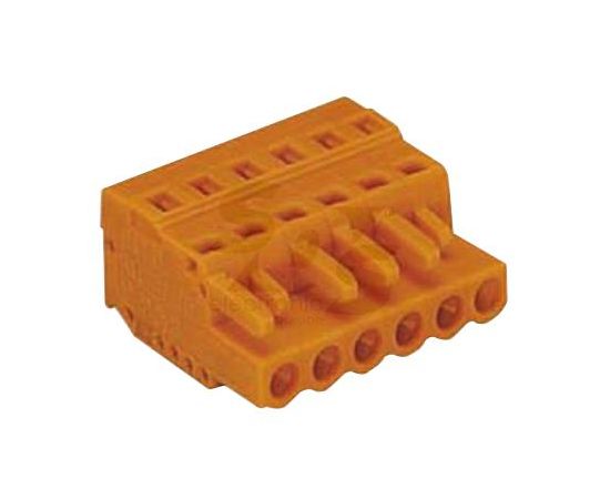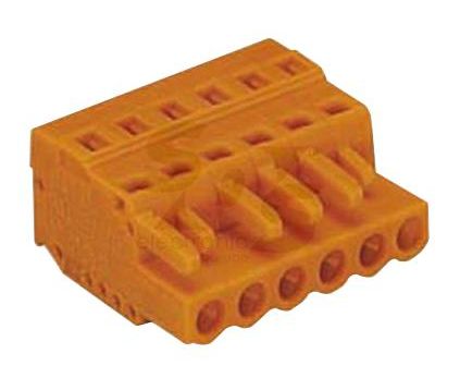 The 231-303/026-000 is a 3-pole orange Pluggable Female Connector with coding fingers closed end. This connector has tin-plated copper alloy contacts, a polyamide 6.6 insulator and the solid fine-stranded wiring method. It accepts 28 to 12AWG wire size.