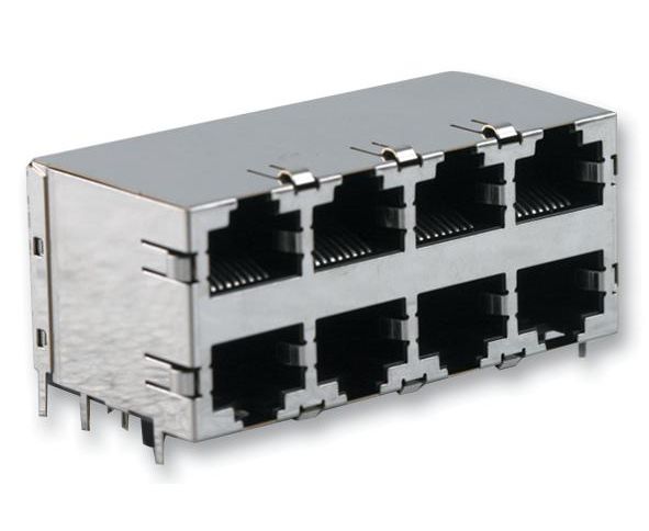 Модульный разъем, Cat5, Modular Jack, 2 x 4, Stacked, 8P8C, Cat5, Монтаж в Сквозное Отверстие