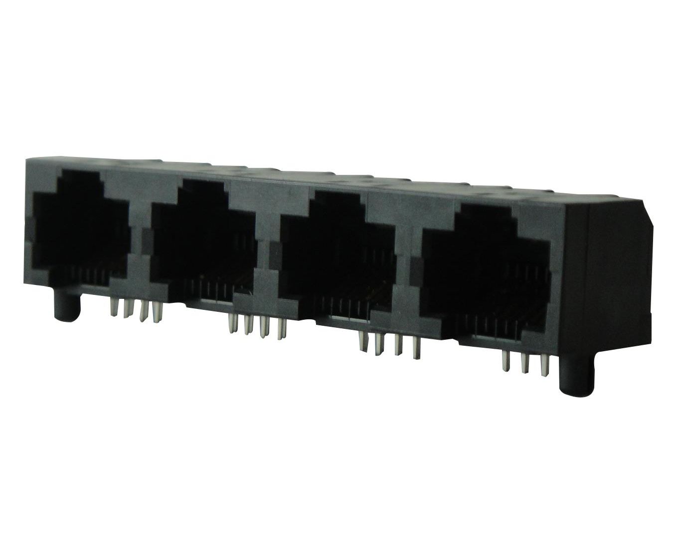 The RJHSE-5080-04 from Amphenol Commercial Products is a right angle mount, 8 positions modular jack with 8 contacts. It is ideal for LAN applications such as adapter cards and routers.