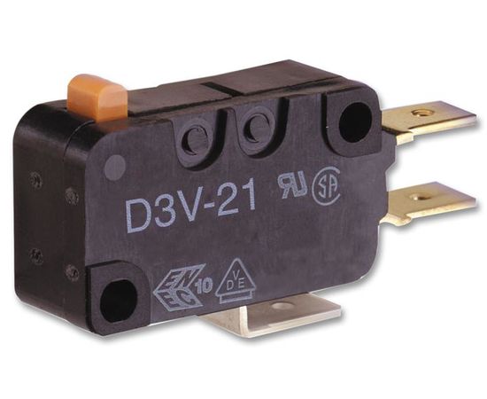 The D3V series reliable miniature Basic Switch with internally or externally fitted lever. Available by 0.1, 6, 11, 16 and 21A models, all with self-cleaning contacts. 0.1A utilizes gold alloy crossbar contacts for high reliability at low loads. Available with 2 fixing positions for external levers.