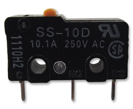 Микропереключатель, Субминиатюрный, Контактный Плунжер, SPDT, Пайка, 10.1 А