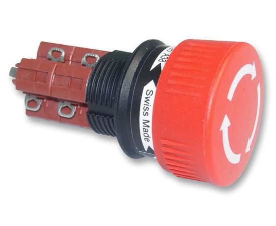 Кнопка аварийной остановки, 2NO / 2NC, Выкл.-Вкл., Пайка, 5 А, 250 В, 250 В
