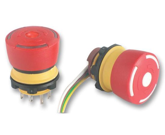 The 84-5030.0040 is a single-pole single-throw Emergency-stop Switch with gold-plated contact, red plastic lens, mushroom lens profile, opaque lens optics and 1NC + 1NO contact type. Flat ribbon cable terminal connection method. Snap-make switching element. 100% switching reliability and foolproof, even in harsh environments. Small behind-panel depth.