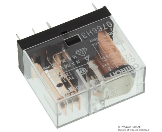 The Omron G2R series are through hole PCB power relays. These electromechanical power relays have safety oriented design with dielectric strength of 5000V between coil and contacts and surge resistance of 10000V. These relays are available in several types such as single pole, double pole, high capacity and high sensitivity type relays.