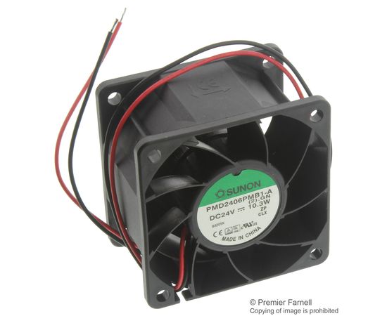 The PMD2406PMB1-A.(2).GN is a 24VDC High Speed Fan with 2-ball bearing and wire leaded power connection. This PMB-series fan comes with a PBT plastic frame, brushless motor and the innovative S and C design provides the best resistance to dust invasion.