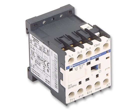 The LC1K0610F7 is a 3-pole TeSys K Contactor with AC coil. 3NO power pole contact composition. 1NO auxiliary contact composition. TeSys K forms a complete range of reversing or non-reversing contactors, offering the best performance/compactness ratio and seamless integration in all applications. Zones sensitive to noise, disturbed mains supplies silent contactor, use compatible with programmable controller outputs low-consumption contactor.