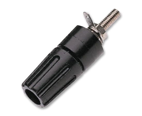 552-0100 является соединительным столбиком черного цвета с гнездом 4мм, монтажом в панель, крышкой из ацетали/изоляцией, контактом/вставкой/втулкой/контргайкой/шайбой из никелированной латуни и выводами под пайку из посеребренной латуни. Изоляционные втулки обладают шпоночным пазом, максимальная толщина панели 12.7мм. Резьбовая оконцовка поставляется с шайбой с ушком под пайку.