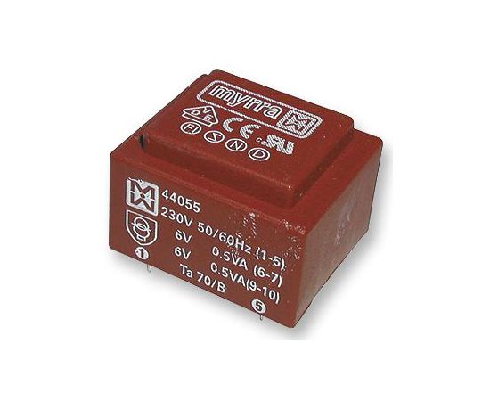 Корпусные трансформаторы 50Гк серии 44000 с монтажом на печатную плату от компании Myrra. Данные трансформаторы обладают сертификатами UL 5085, VDE, EN 61558-2-6, EN 60950.