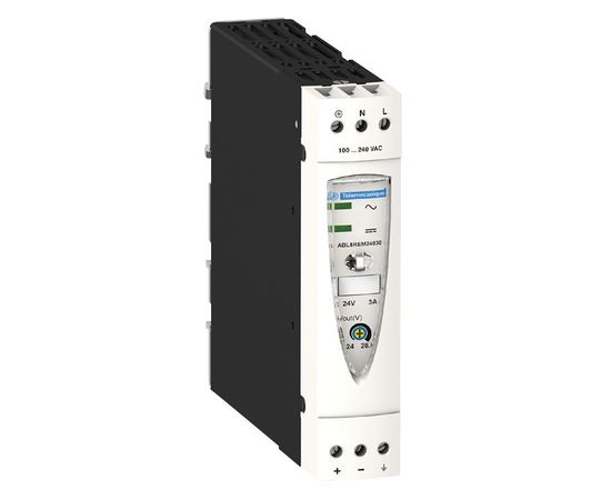ABL8REM24030 является стабилизированным, импульсным источником питания Phaseo Optimum с монтажом на DIN-рейку от компании Schneider. Однофазный или двухфазный импульсный источник питания для промышленного использования. Данный источник питания возможно подключить к фазе и нейтрали (N-L1) или к двум фазам (L1-L2). Соответствует IEC стандартам и обладает международными сертификатами UL, CSA и TUV. Источники питания Optimum Phaseo оснащены устройством защиты для оптимальной производительности в системах автоматизации с режимом автоматического сброса по удалению ошибки.