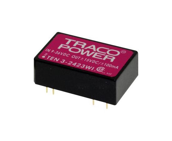 The TEN 3-2423WI from Tracopower is a TEN 3WI series 3W DC to DC converter in 24 pin DIP plastic package. It features ultra-wide 4:1 input voltage. A high efficiency allows operation ambient temperatures of -40°C to +70°C at full load. A built-in EMI input filter complies with EN 55022, class A without need of external components. Further standard features include over voltage protection and continuous short circuit protection. Typical applications for these converters are battery operated equipment and distributed power architectures in communication, instrumentation and industrial electronics, everywhere where isolated, tightly regulated voltages are required.