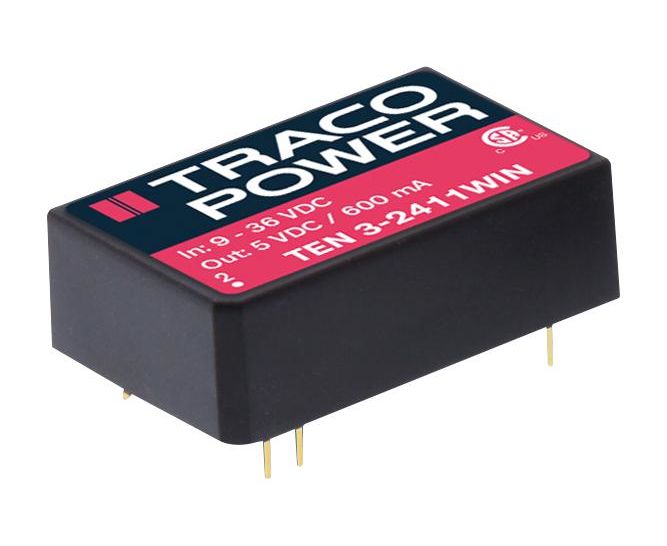 The TEN 3-2423WIN from Tracopower is a 3W dual output DC to DC converter in 24 pin DIP package. It is a drop in replacement of the prevalent TEN 3WI series DC to DC converter. The up-to date design enables a cost reduction without any compromise to reliability and function. This DC to DC converter has ultra wide 4:1 input voltage range and input filter to meet EN 55022, class A and FCC, level A without external components. Increased EMC immunity and extended operating temperature range make this converter as an ideal solution for cost critical but demanding applications. It is a drop in replacement for common 3W converters in DIP24 package with the standard pinning. The converter has continuous, automatic recovery short circuit protection and no minimum load is required. The TEN 3-2423WIN has EN 61000-4-2, air ±8KV, contact ±6KV (criteria A) ESD protection and non conducting FR4 case with UL 94V-0 rated epoxy potting and gold plated copper alloy pins.