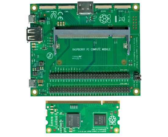 Новый комплект разработчика Raspberry Pi Compute Module позволяет опытным инженерам использовать плату IO Compute Module и вычислительный модуль с загружаемыми схемами для создания собственных дизайнов печатных плат, и использовать возможности Raspberry Pi в своих приложениях.